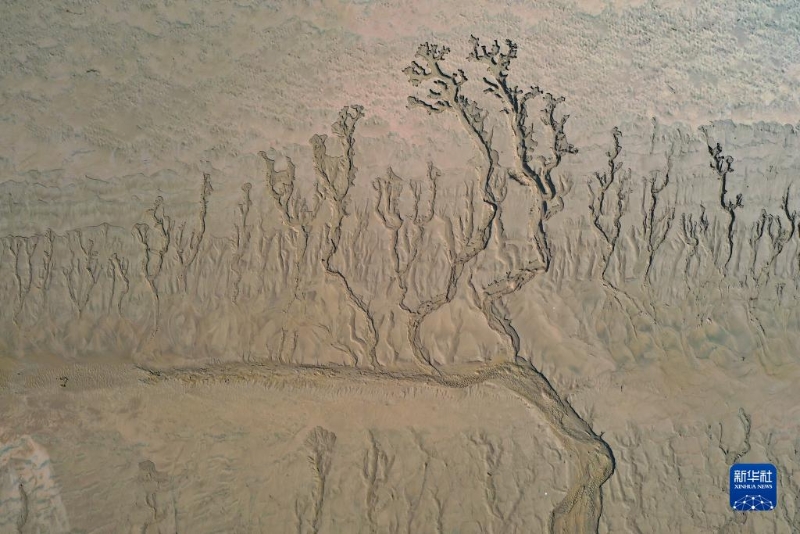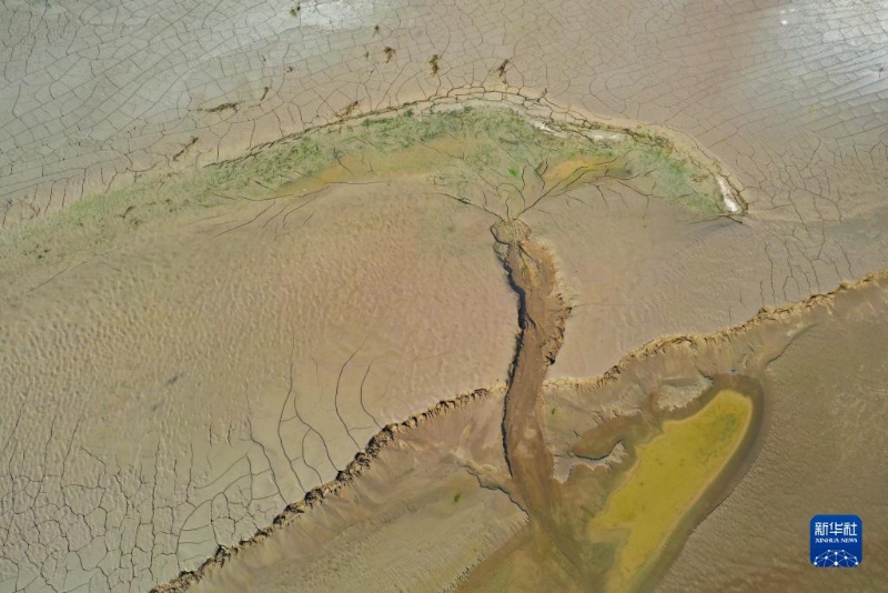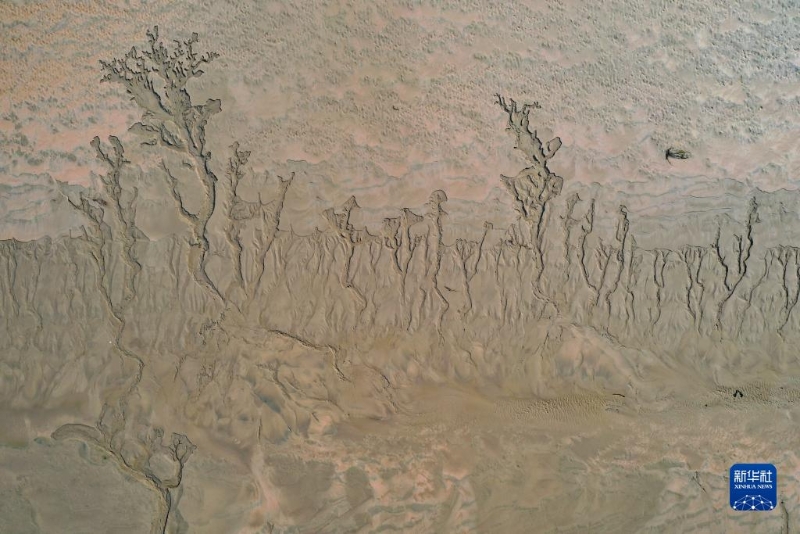 近日,隨著黃河調(diào)水調(diào)沙結(jié)束,黃河河南省開封市黑崗口險工段水位下降。河床被水流沖刷過后呈現(xiàn)出縱橫交錯的“脈絡(luò)”。