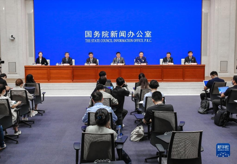 7月25日,國務(wù)院新聞辦公室在北京舉行國務(wù)院政策例行吹風(fēng)會,請應(yīng)急管理部副部長、水利部副部長王道席,國家消防救援局副局長羅永強,自然資源部地質(zhì)勘查管理司司長于海峰,水利部水旱災(zāi)害防御司司長姚文廣,應(yīng)急管理部防汛抗旱司司長陳敏,中國氣象局應(yīng)急減災(zāi)與公共服務(wù)司負責(zé)人王亞偉介紹防汛抗旱工作情況,并答記者問。新華社發(fā)(劉健 攝)