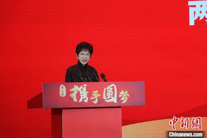 7月25日,中國國民黨前主席、中華青雁和平教育基金會董事長洪秀柱在第三屆“攜手圓夢——兩岸同胞交流研討活動”開幕式中致辭。 中新社記者 朱賀 攝