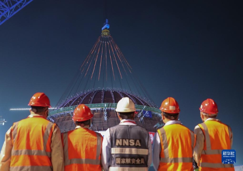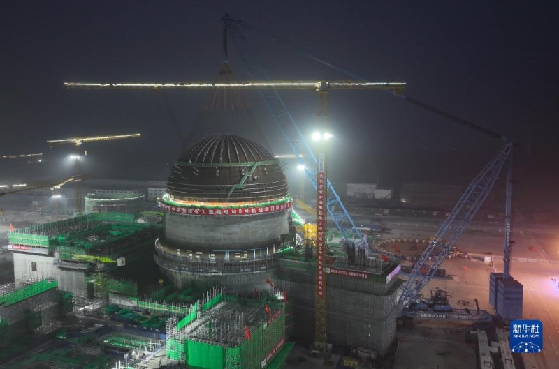 這是7月25日拍攝的徐大堡核電項(xiàng)目3號(hào)機(jī)組穹頂?shù)跹b施工現(xiàn)場。