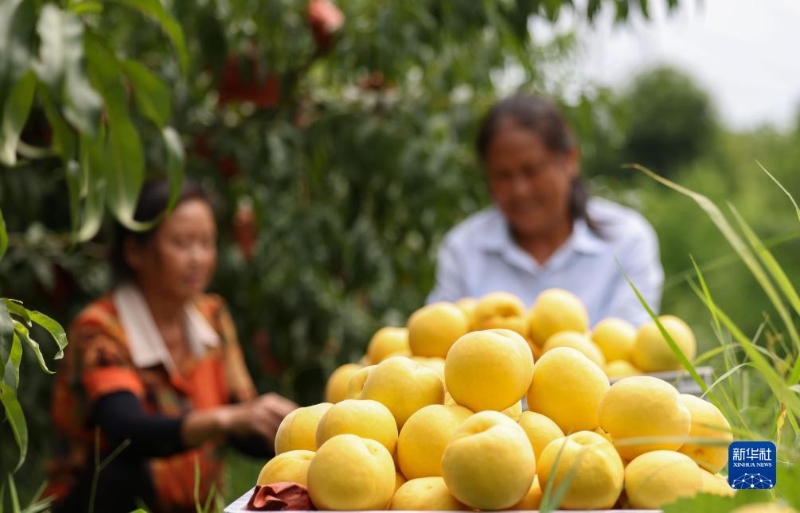時(shí)下,貴州省銅仁市玉屏侗族自治縣種植的黃桃迎來收獲季,果農(nóng)們忙著采摘、分揀、搬運(yùn)黃桃,供應(yīng)市場。近年來,玉屏侗族自治縣把發(fā)展黃桃產(chǎn)業(yè)列為鄉(xiāng)村振興工作的重要支柱產(chǎn)業(yè),通過出臺政策支持、東西部協(xié)作資金幫扶、擴(kuò)大種植面積、發(fā)展精深加工等措施,逐步發(fā)展壯大黃桃產(chǎn)業(yè),促進(jìn)當(dāng)?shù)剞r(nóng)民持續(xù)增收。新華社發(fā)(胡攀學(xué) 攝)
