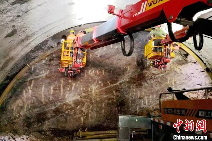 中新網(wǎng)成都7月24日電 (記者 劉忠俊 王鵬)7月24日,歷經(jīng)2200多個晝夜鏖戰(zhàn),四川眉山市仁壽縣經(jīng)樂山沐川縣至宜賓市屏山縣新市鎮(zhèn)高速公路(下稱:“仁沐新高速”)全線最長的五指山特長隧道雙洞貫通,為2023年內(nèi)全線建成通車奠定了基礎(chǔ)。