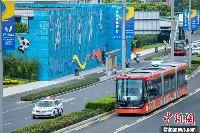 中新網成都7月25日電 (記者 王鵬)25日上午,由中國中車株洲電力機車研究所有限公司自主研發(fā)制造,蜀道集團投資、建設、運營的新一代“智軌列車”在成都亮相,在成都東軸線快速公交K7線(區(qū)間線)載客試運行,將直達成都東安湖體育公園,助力成都大運會。