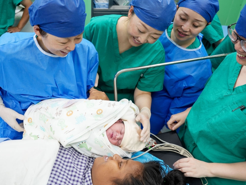 中國海軍“和平方舟”號(hào)醫(yī)院船在基里巴斯為29歲的塔拉瓦居民德阿瑞接生了一名“和平寶寶”(2023年7月16日攝)。新華社發(fā)(劉偉 攝)