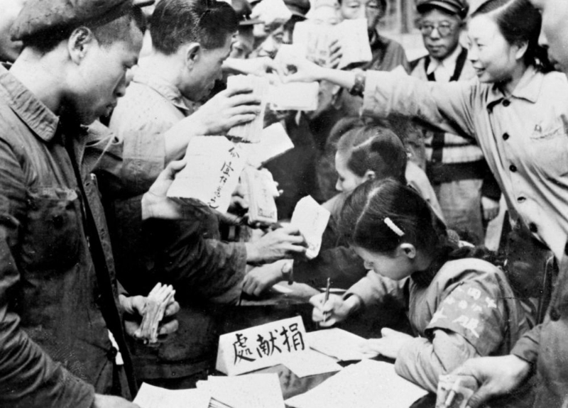 ——知識(shí)分子為支援前線的愛國事業(yè)鼓與呼,醫(yī)務(wù)工作者組織大批醫(yī)療隊(duì)奔赴前線,“為最可愛的人購買飛機(jī)大炮”的捐款熱潮席卷了每一個(gè)社會(huì)層面、每一個(gè)社會(huì)角落……