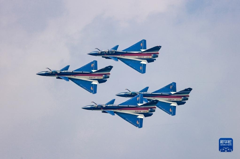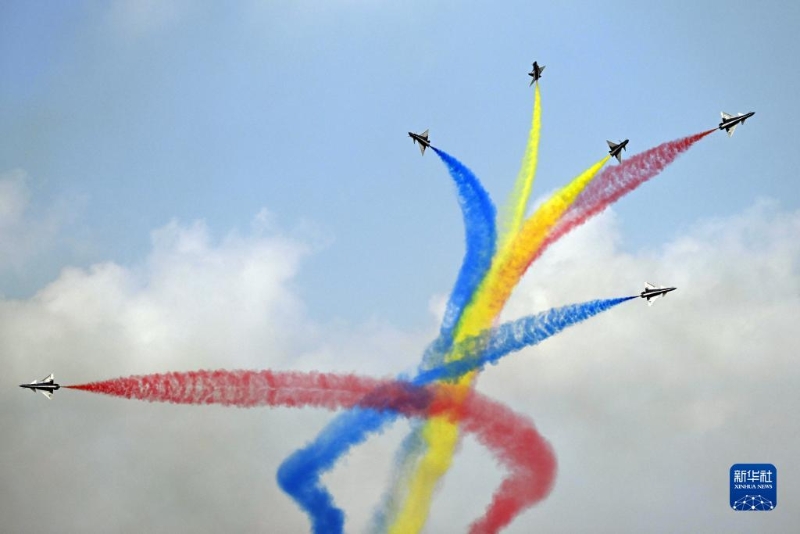 7月26日,在2023年空軍航空開放活動(dòng)·長春航空展上,空軍八一飛行表演隊(duì)進(jìn)行飛行表演。新華社記者 顏麟蘊(yùn) 攝