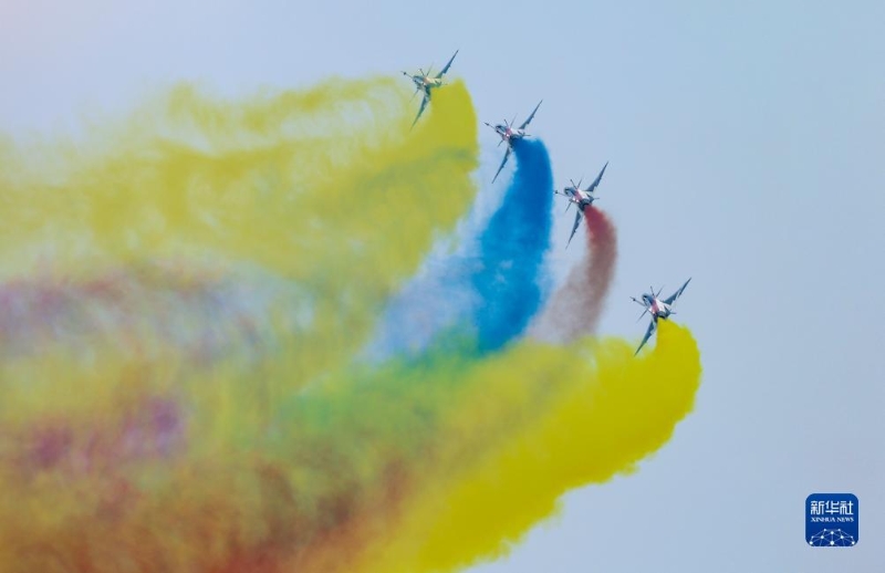 7月26日,在2023年空軍航空開放活動·長春航空展上,空軍八一飛行表演隊進行飛行表演。新華社記者 顏麟蘊 攝