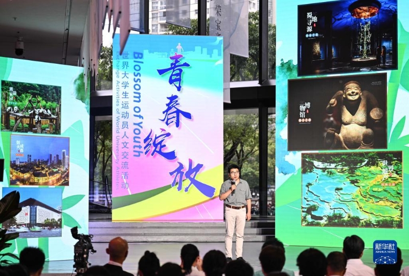 7月26日,嘉賓在世界大學生運動員人文交流活動啟動儀式上進行文化推介。