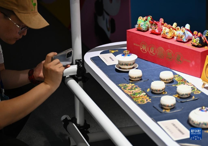 7月26日,觀眾在世界大學生運動員人文交流活動啟動儀式上拍攝文創(chuàng)產(chǎn)品。