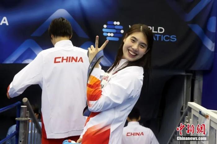 資料圖:張雨霏世錦賽奪冠后慶祝勝利。中新社記者 湯彥俊 攝