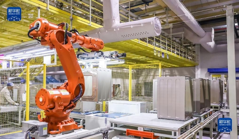 海爾青島中德滾筒洗衣機(jī)互聯(lián)工廠生產(chǎn)線(資料照片)。新華社發(fā)