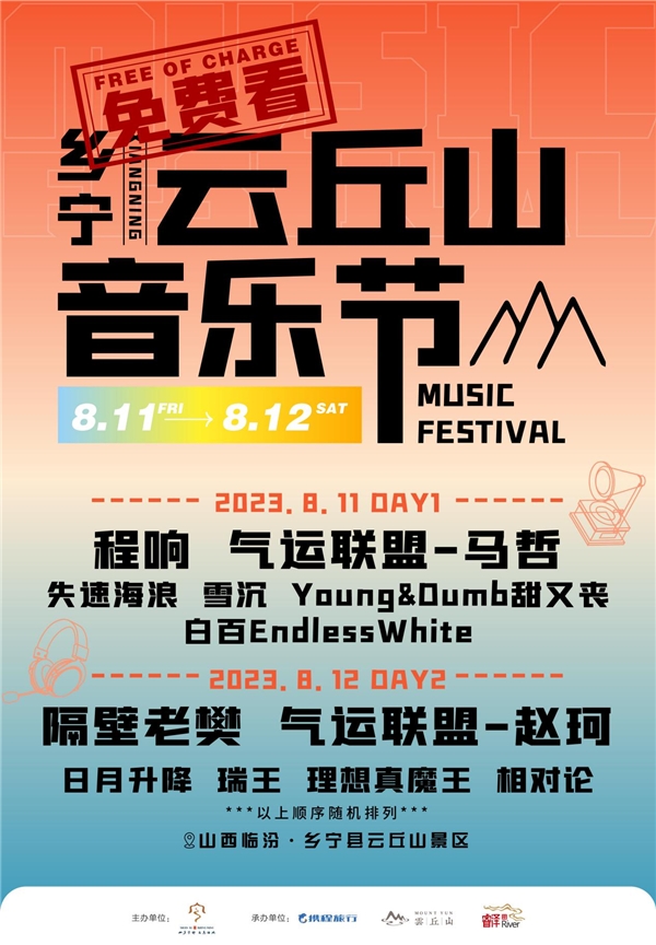 8月11日-8月12日晚,以“讓音樂響徹云丘山”為主題的,云丘山音樂節(jié)在云丘山景區(qū)即將開幕,將打造2023云丘山音樂節(jié),以音樂為媒、美食為介、景區(qū)為感,夜集、夜演、夜游紛紛登場,演繹月光下的精彩,進(jìn)一步點(diǎn)燃鄉(xiāng)寧“夜經(jīng)濟(jì)”,釋放城市活力