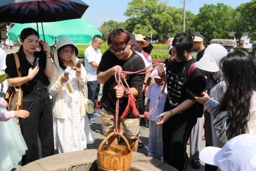 (圖為實(shí)踐隊(duì)隊(duì)員體驗(yàn)打紅井水)