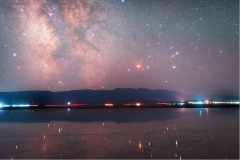 2023年7月17日,在新疆哈密巴里坤湖拍攝的夏日銀河倒影(劉兵攝)