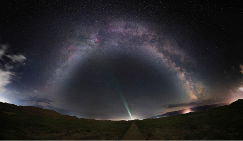 2023年7月19日,在新疆哈密巴里坤拍攝的大河唐城壯美的銀河拱橋。(譚楚凡 攝)