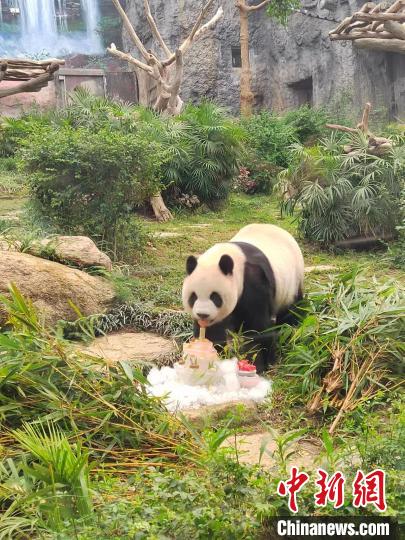 圖為“心心”吃冰蛋糕。澳門特區(qū)政府市政署供圖