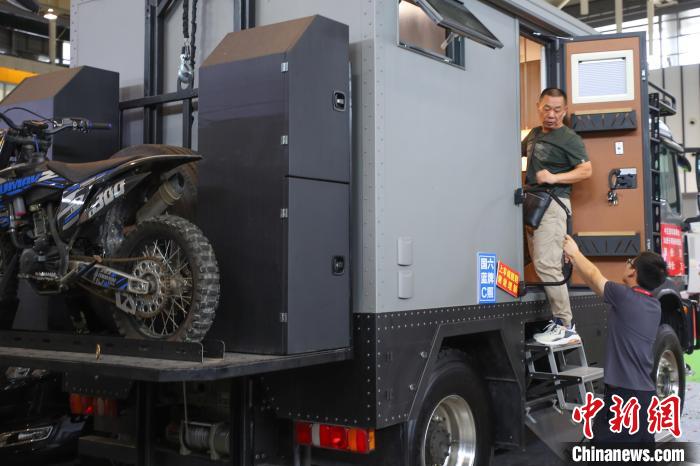 7月29日,觀眾在南京國際博覽中心參觀展出的房車。7月27至30日,2023長三角(南京)國際旅游裝備博覽會暨2023第五屆南京(國際)房車旅游文化博覽會舉辦。本屆博覽會以“引領(lǐng)旅游高品質(zhì)出行,助力產(chǎn)業(yè)高質(zhì)量發(fā)展”為主題,匯集了全國各地150多家汽車、房車、旅游裝備和旅游商品企業(yè)的200多個產(chǎn)品參展。