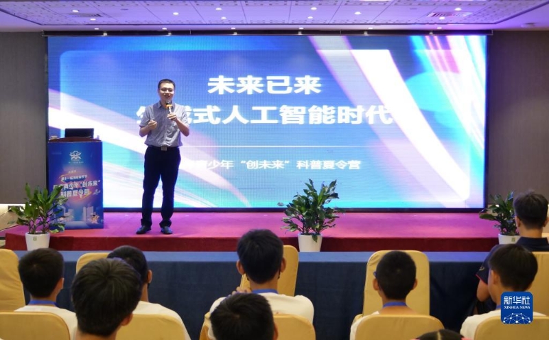 7月30日,參加夏令營(yíng)的青少年聆聽人工智能科普講座。新華社記者 林凱 攝