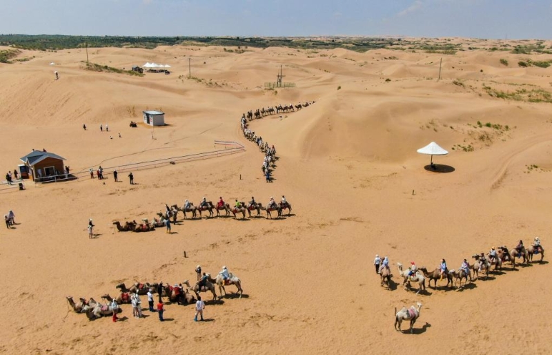 正值暑期,內(nèi)蒙古鄂爾多斯市達(dá)拉特旗境內(nèi)的庫布其沙漠游客絡(luò)繹不絕,沙漠旅游一派火熱。新華社記者彭源 攝