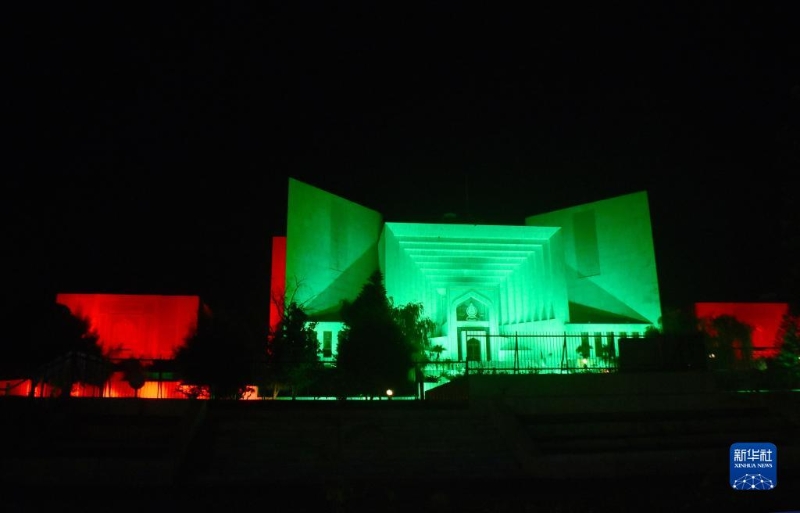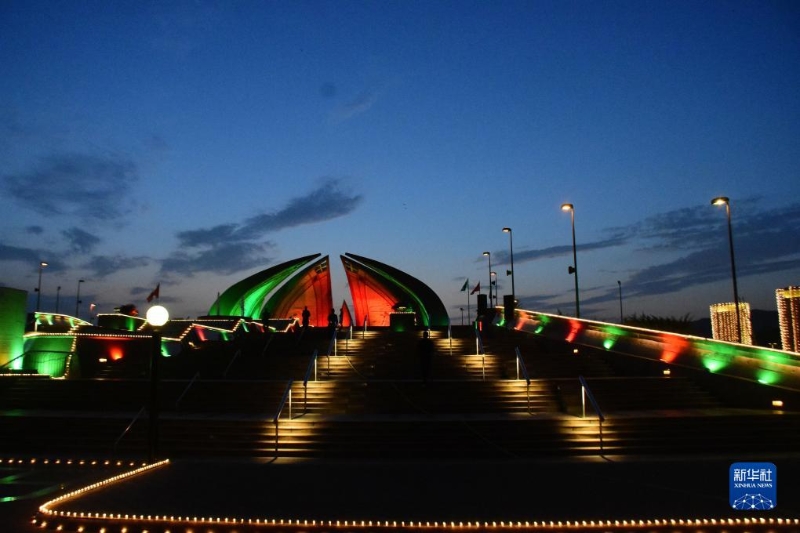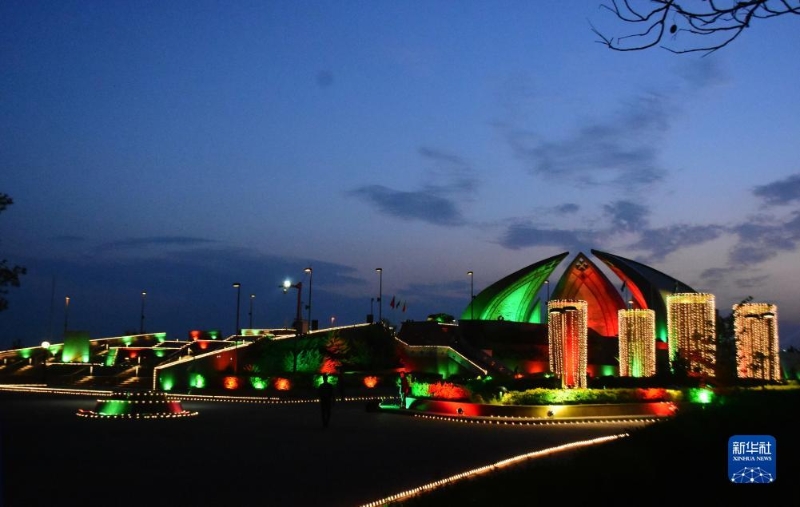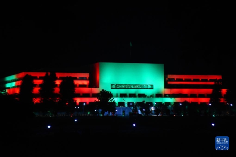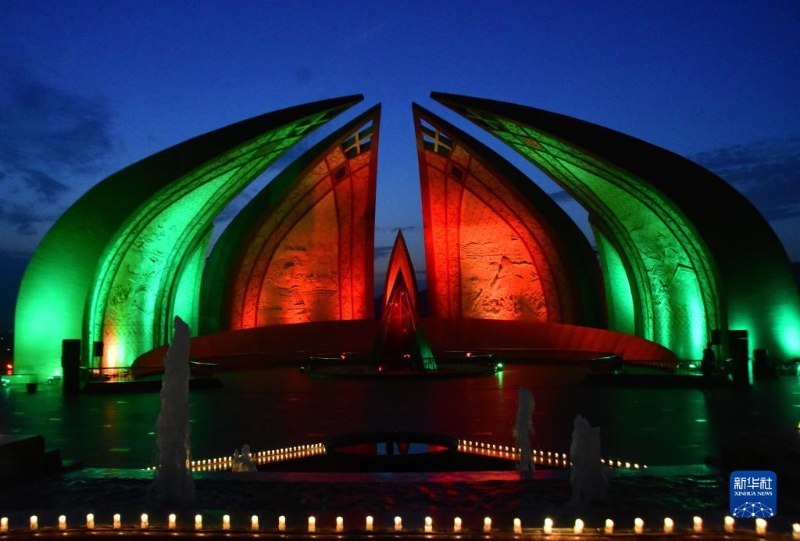 近日,巴基斯坦首都伊斯蘭堡地標(biāo)建筑亮起中巴兩國國旗顏色燈光,慶祝中巴經(jīng)濟走廊啟動十周年。