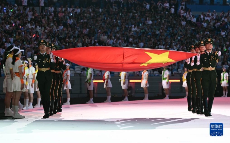 7月28日,中華人民共和國國旗入場。