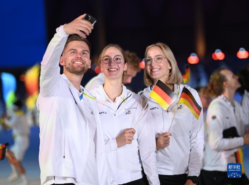 7月28日,德國大學生體育代表團在開幕式上入場。