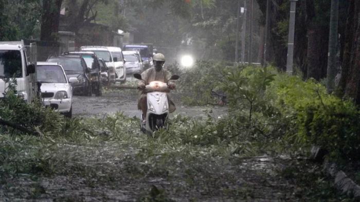 高雄半夜強風狂刮,有民眾夜間下班后要撐傘即被狂風吹斷,也有多名網友分享住家周邊路樹倒塌情況,甚至有樹干砸到路邊停放的汽車,直呼“很久不見這么強風勢”。