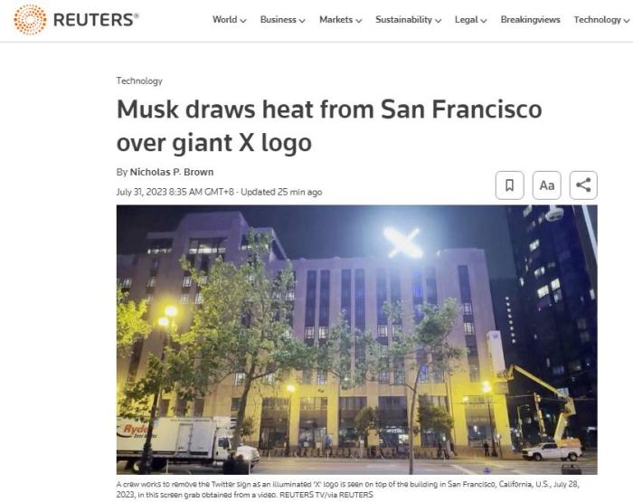 事實(shí)卻是并非所有舊金山人都對(duì)馬斯克表示歡迎。在馬斯克宣布將推特公司的名字變更成“X”后,該公司于28日在位于舊金山市集街(Market Street)的大樓屋頂上,安裝了一個(gè)會(huì)發(fā)光的“X”標(biāo)志。這讓一些附近居民感到煩擾,抱怨燈光“刺眼”。