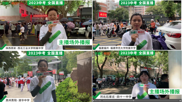 6月12日至6月30日,全國各地中考陸續(xù)進(jìn)行,萬唯2023全國中考考場外直播項目組成員奔赴至全國30個省區(qū)市,共48個考場外,抖音、視頻號、快手、小紅書、B站同時直播,用鏡頭記錄莘莘學(xué)子人生第一次大考考場外精彩瞬間。