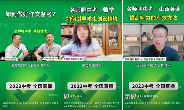 據(jù)統(tǒng)計,萬唯2023全國中考考場外直播觀看人次達(dá)213萬,直播衍生原創(chuàng)短視頻觀看人次超2億、點贊數(shù)超153萬。