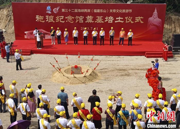 7月31日,紀(jì)念施瑯將軍東山出師收復(fù)臺灣340周年系列活動在福建漳州東山縣舉行,圖為施瑯紀(jì)念館奠基培土儀式現(xiàn)場。東山縣陳城鎮(zhèn)供圖