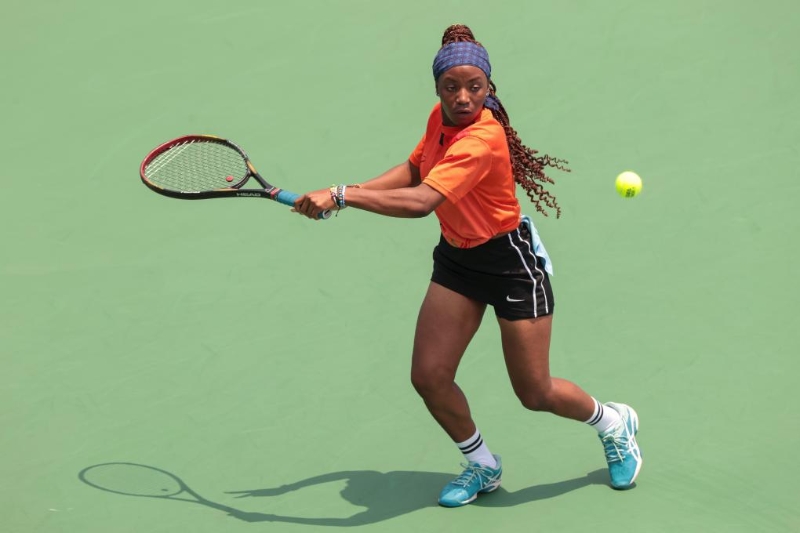奎因·薩卡拉在成都大運(yùn)會(huì)的比賽中回球。圖片來自成都大運(yùn)會(huì)網(wǎng)上新聞中心