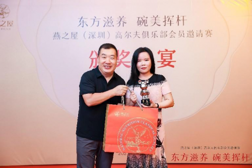 隨后,燕之屋執(zhí)行董事、總裁、燕之屋(深圳)高爾夫俱樂部會長李有泉與眾領導嘉賓共同舉杯祝酒。席間,賽事總桿冠亞季軍、凈桿冠亞季軍等獎項正式揭曉,掀起晚宴熱潮,賽事組委會為獲獎球員頒發(fā)獎杯以及碗燕禮盒。
