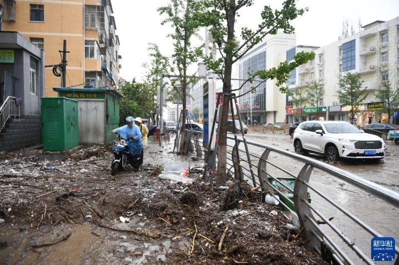 連日來,北京出現(xiàn)暴雨或大暴雨,局地現(xiàn)特大暴雨。受降雨影響,位于北京西部的門頭溝區(qū)部分道路中斷,工作人員正在積極恢復(fù)路面秩序。