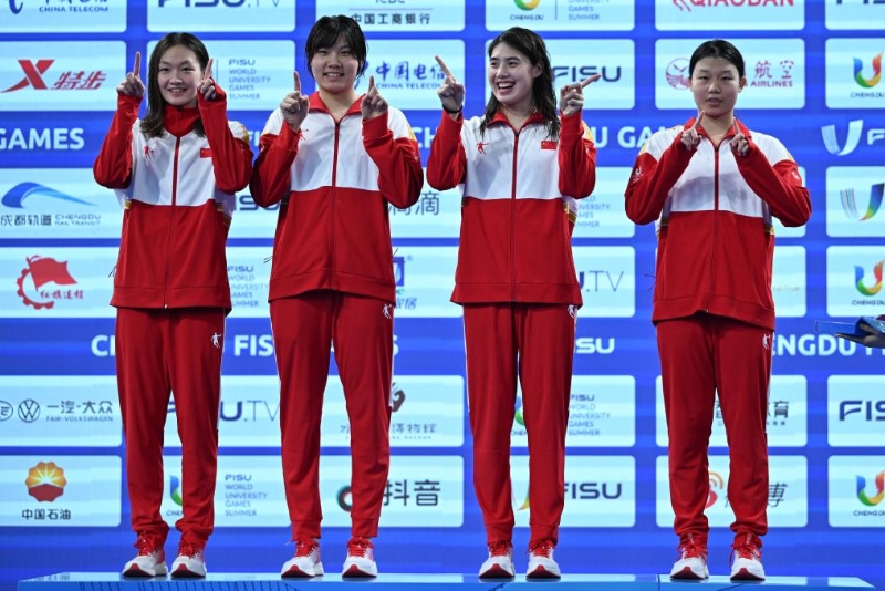從日本福岡世錦賽凱旋的世界“蛙王”覃海洋和“蝶后”張雨霏當(dāng)天凌晨才到成都,隨即刷新男子100米蛙泳和女子50米蝶泳的賽會紀(jì)錄。張雨霏還率領(lǐng)中國隊以3分37秒51的成績創(chuàng)造了女子4x100米自由泳接力賽會紀(jì)錄,開啟成都大運會游泳奪金之旅。