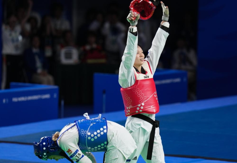 中國隊還在跆拳道項目上獲得兩枚金牌,宋潔逆轉(zhuǎn)奪得女子67公斤級冠軍,張凱則拿下男子80公斤級金牌。