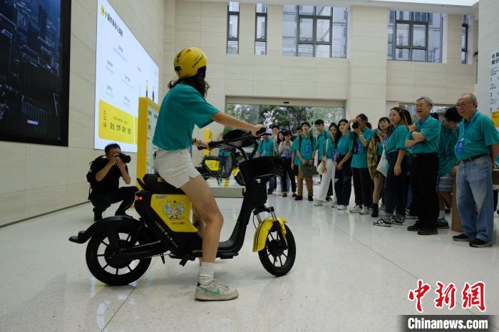 臺(tái)生體驗(yàn)小遛共享電單車(chē)?!≈行律缬浾?林波攝