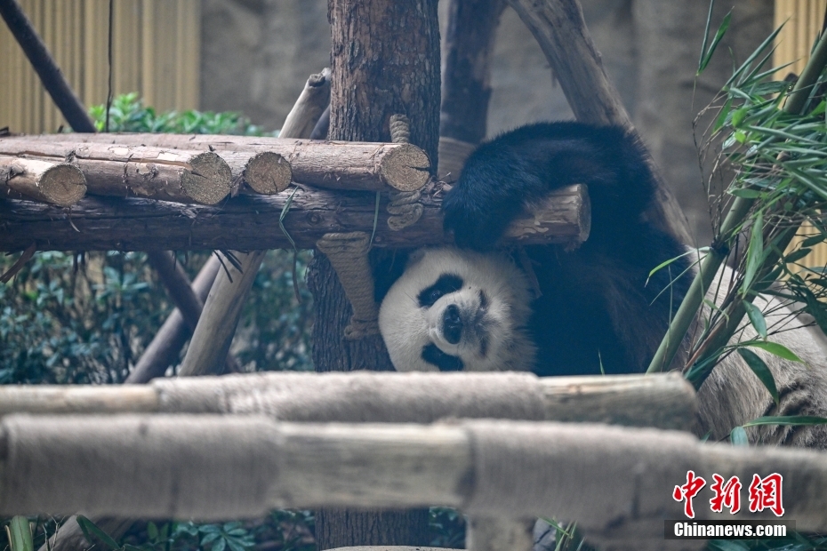 8月1日,參加第31屆世界大學生夏季運動會的大學生運動員們參觀成都大熊貓繁育研究基地。成都大運會期間,成都大熊貓繁育研究基地成為參賽代表團的熱門打卡點。圖為成都大運會吉祥物“蓉寶”的原型——大熊貓芝麻憨態(tài)可掬。中新社記者 趙文宇 攝