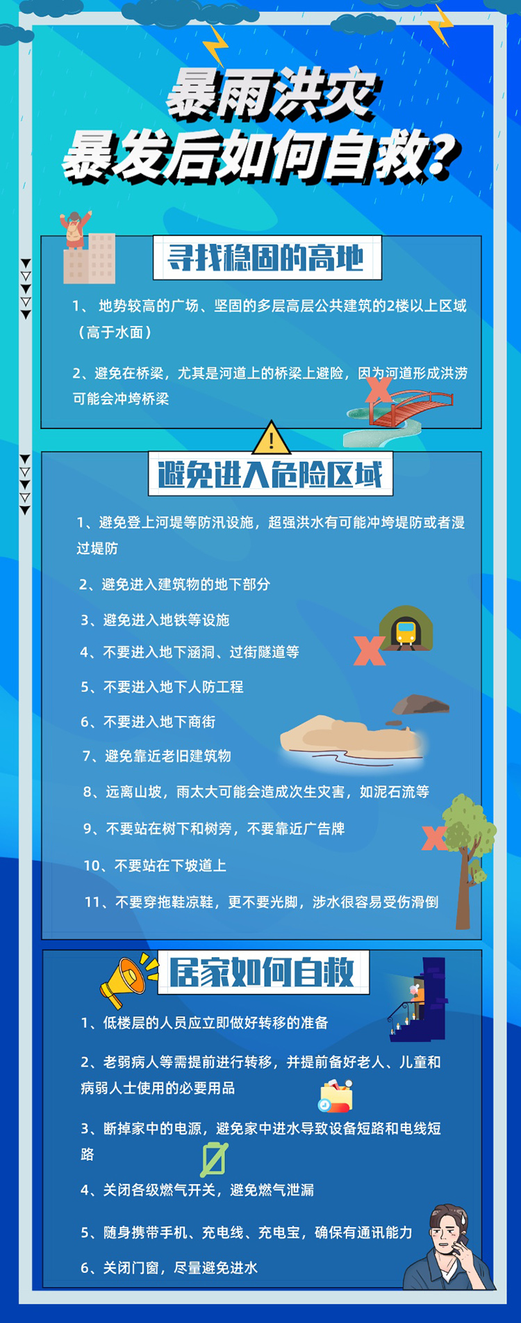 近日,受臺風(fēng)“杜蘇芮”影響,華北、黃淮等地出現(xiàn)極端降雨過程。暴雨天氣安全事故易發(fā),在家或出門在外,遇到突發(fā)情況如何自救?一起了解下。