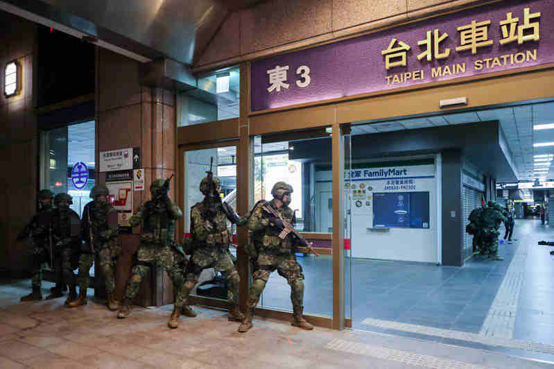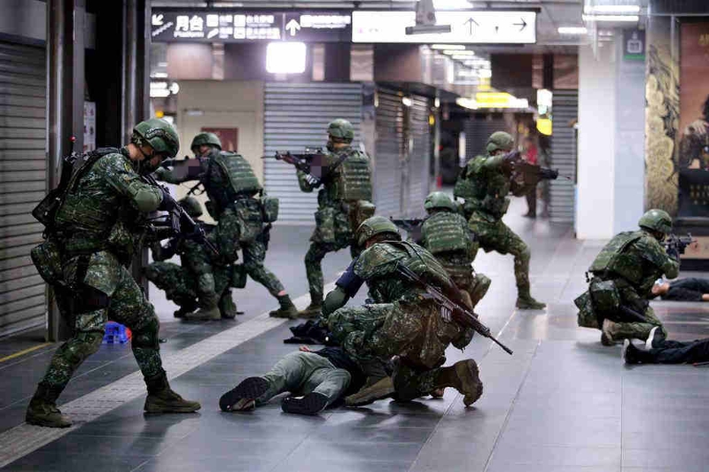 “漢光演習”模擬臺北車站遭恐怖分子襲擊。 圖片來源:臺灣“中時新聞網”黃世麒攝