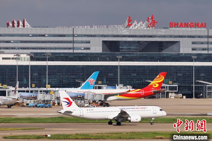 東航第二架國產(chǎn)C919大型客機在上海虹橋機場滑行道上滑行。中新社記者 殷立勤 攝