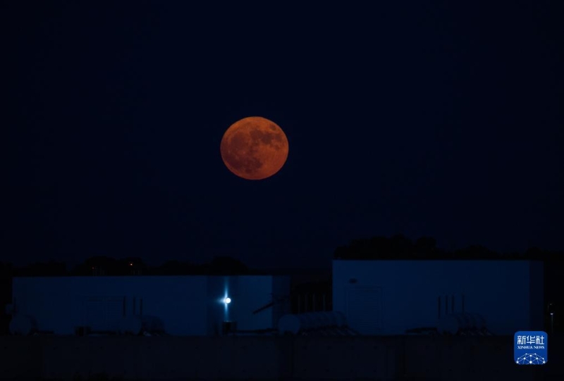 8月1日晚,在塞浦路斯首都尼科西亞,一輪滿月從天邊升起。
