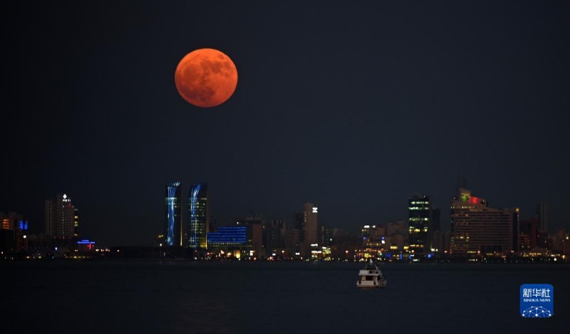 8月1日晚,一輪滿月出現(xiàn)在科威特哈瓦利省上空。
