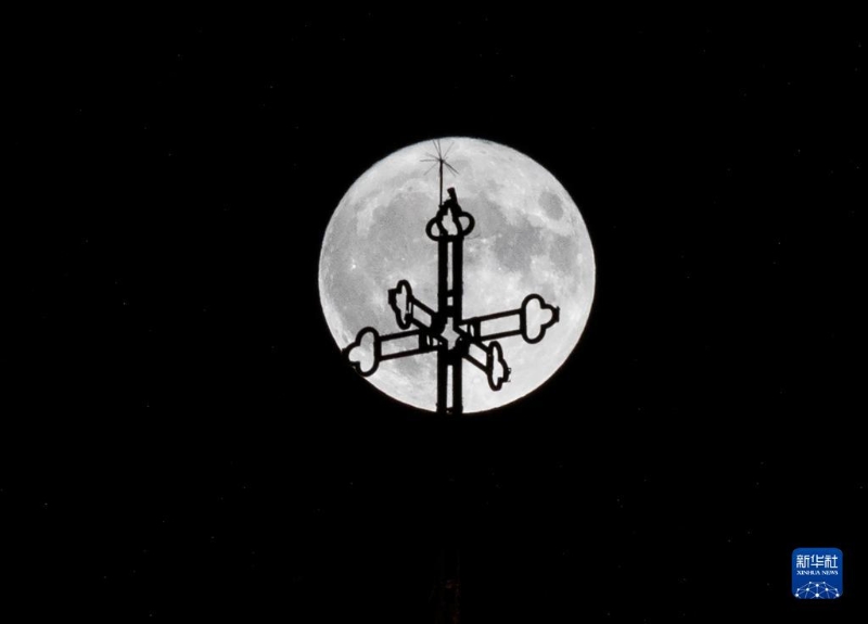 8月1日晚,一輪滿月現(xiàn)身耶路撒冷上空。