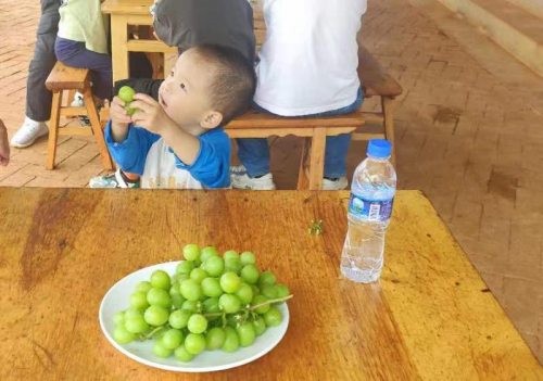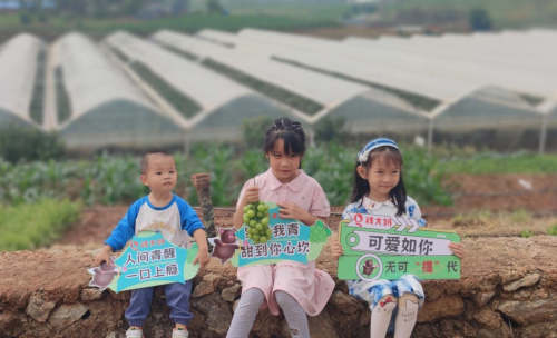 此后,經(jīng)過短暫休息,錢大媽會員們陸續(xù)進(jìn)入種植核心區(qū),近距離觀察陽光玫瑰青提的種植和產(chǎn)出過程。架子上新鮮的陽光玫瑰青提翠綠欲滴,不但讓會員們頻頻點(diǎn)贊,也吸引了小朋友們的目光。家長們?nèi)滩蛔〖娂娕恼詹⑾嗷ビ懻?,小朋友則雀躍著跑過一個個木架,與父母分享著自己的各種發(fā)現(xiàn)。有的小朋友忍不住跟剛認(rèn)識的小伙伴炫耀:“就是這個青提,我家買了好多呢,每天晚上媽媽都會洗給我吃,特別特別甜呢!”看到孩子們開心,家長們自然十分欣慰,有位家長欣喜地表示,其實(shí)這次活動最大的意義就是讓孩子們近距離接觸自然,融入社會,讓他們學(xué)到更多教材里學(xué)不到的內(nèi)容,體驗(yàn)生活的百態(tài)。