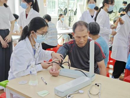 (服務(wù)隊在三山社區(qū)民警中隊開展義診服務(wù),攝/凌曉彤)