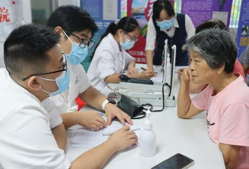 (服務(wù)隊在東區(qū)關(guān)愛中心開展義診服務(wù),攝/李曉忻)