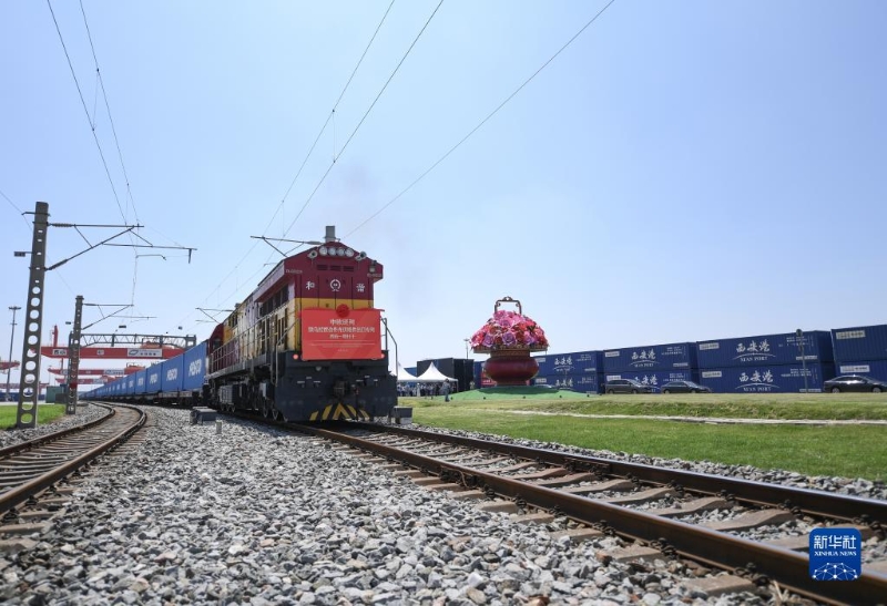 當(dāng)日,中歐班列(西安-塔什干)陜?yōu)踅?jīng)貿(mào)合作隆基綠能光伏組件出口專列首發(fā)儀式在西安國(guó)際港站舉行,裝載光伏組件的中歐班列“長(zhǎng)安號(hào)”駛向?yàn)跗潉e克斯坦,助力當(dāng)?shù)匦履茉错?xiàng)目建設(shè)。