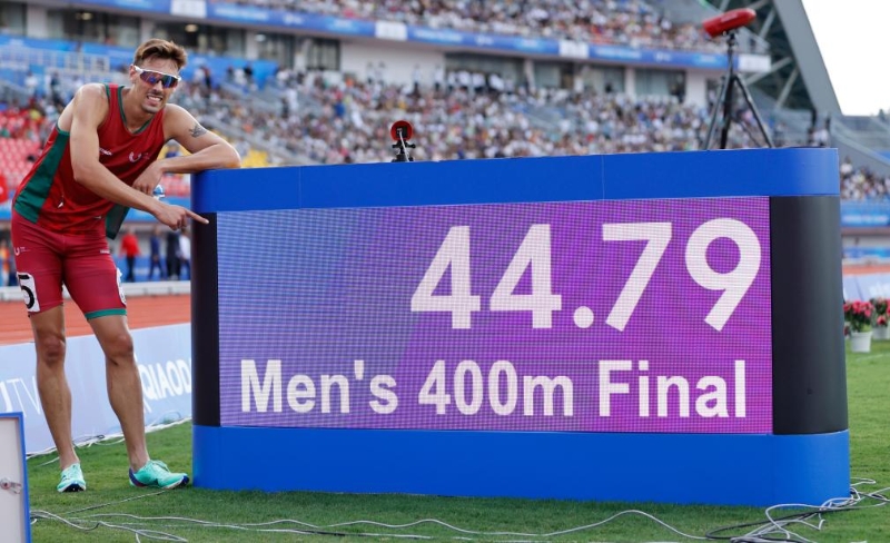 當(dāng)天田徑項目男子400米決賽上演“神仙打架”,最終葡萄牙選手科埃略以44秒79的成績獲得金牌,并打破賽會紀(jì)錄。