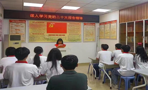 圖為汕頭聿懷中學(xué)的學(xué)生在學(xué)習(xí)黨史以及當(dāng)?shù)丶t色文化